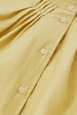 Round neckline with small collar stand, gathered details